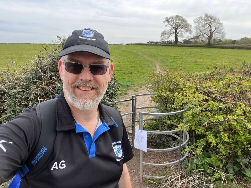 My (Andy) wife dropped Mark and I over to Coalpit Heath and the Roundways road where we located the entrance to the field where the Dramway began. Mark being his usual media-shy self declined to be in the photos so it's just me posing by the entrance.